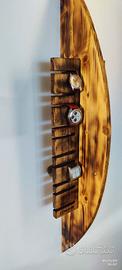 Oggetto originale, fatto a mano di legno lavorato a porta orologi. Comodo e facile da applicare al muro. Per esporre la collezione di tutti i vostri orologi in modo elegante e unico.
