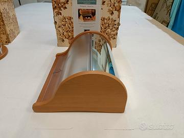 Mobiletto accessorio per cucina in legno di faggio acciaio e plexiglass, nuovo ancora su imballaggio originale. Ottimo articolo regalo. Ritirabile a Vicenza zona mercato nuovo o disponibile x spedizione.