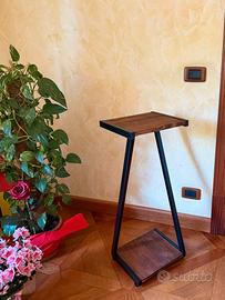 porta piante lavorato a mano misura largo 28*28 altezza 80 ferro colore nero legno noce