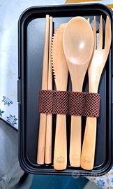 POSATE E BACCHETTE IN LEGNO INCLUSE schiscetta pranzo include coltello, forchetta, cucchiaio e bacchette in legno, lavabili in lavastoviglie.