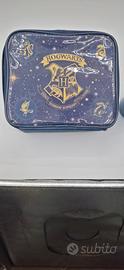 - Porta pranzo in tessuto, blu scuro con stampa a tema Hogwarts.