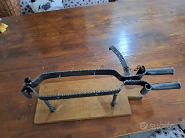 Causa inutilizzo vendo porta prosciutto a cerniera in ferro battuto con base in legno
