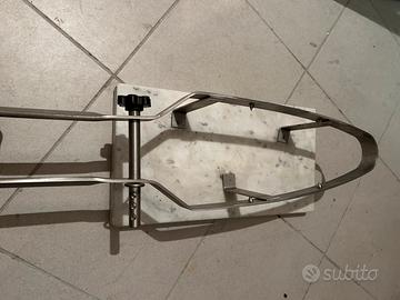 Vendo porta prosciutto crudo professionale in acciaio inox con solida base in marmo, ideale per tagliare e servire il prosciutto in modo pratico ed elegante.
