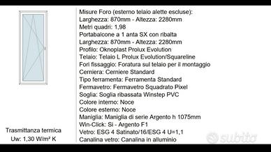 Affare .... porta acquistata per errore da IterdiRuggeri....misure 223x 80 nella scheda tecnica visionare le foto,il colore dell'infisso è colore noce,doppio vetro camera.Conttattatemi se davvero interessati e per eventuali chiarimenti