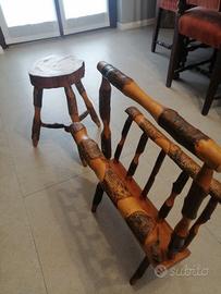 PORTA RIVISTE E SGABELLO IN PINO OTTIMO PER TUTTI GLI USI