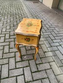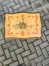 Porta riviste in legno laccato stile 700 veneziano . Misure 45cmx 32cm , altezza cm 53 . In buone condizioni