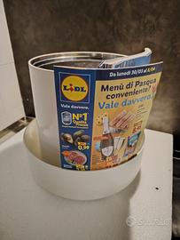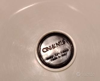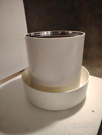 Ottime condizioni, presenta lievi segni d'uso. “Servopoltrona” è oggetto di nuova concezione – anno 1969 - che i designer OPI Milano chiedono di non confondere con il più conosciuto “Portariviste girevole”. In quanto componente della filosofia aziendale di Cini & Nils esso risolve con semplicità il problema di come tenere accanto a sé, per servirsene senza spostarsi, tutto ciò che può occorrere quando si è comodamente rilassati in poltrona. Sul piano d’appoggio antimacchia trovano posto, ad altezza del bracciolo, bicchiere e bottiglia, posacenere, accendino, pipa e tabacco, mentre nella tasca bassa il servopoltrona ospita il libro o la rivista che si sta leggendo. Si compone di due pezzi: un corpo monoblocco costituito da un cilindro con ripiano superiore e risvolto alla base in resina AS trattata con antistatico e un vassoio inamovibile realizzato in acciaio inox lucidato a specchio. Condizioni ottime