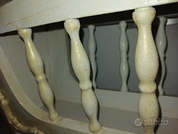 Vendo portariviste in legno restaurato in stile shabby chic avorio con fregi e patina oro rifinito con protettivo all acqua.