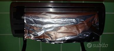 Porta Carta Alluminio e Pellicola utile in cucina con cursori provvisti di rotella affilata x tagliare fogli di Alluminio e Pellicola o Carta Forno. si installa con 4 piccoli fori nel muro , praticamente mai usato.