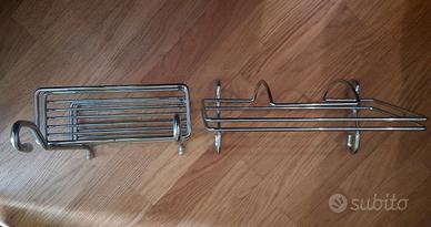 Organizza la tua cucina con stile e praticità! Vendo coppia di accessori universali in acciaio cromato, progettati per essere appesi alle comuni aste sottopensile da cucina. Una soluzione ideale per liberare spazio sul piano di lavoro e avere tutto a portata di mano mentre cucini. Il set comprende: 1 Porta Rotolo: Design ergonomico per contenere comodamente il rotolo di carta assorbente (scottex). 1 Porta Spezie / Mensole multifunzione: Perfetto per barattoli di spezie, boccette di olio o piccoli utensili. Caratteristiche principali: Materiale: Acciaio resistente, facile da pulire e brillante. Installazione: Immediata, basta agganciarli all'asta senza bisogno di fori o viti. Condizioni: Ottime, come visibile in foto (struttura solida e senza ruggine).