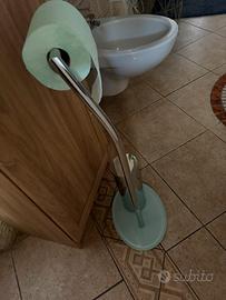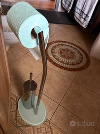 Porta rotolo e scopino wc integrato in acciaio e vetro