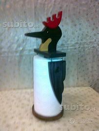 simpatico porta rotolo da cucina a forma di pappagallo,picchio,tucano, pinguino,gallo,cuoco, lavorazione artigianale in legno verniciato con vernici atossiche ad acqua,cm.40x15 bellissima idea regalo