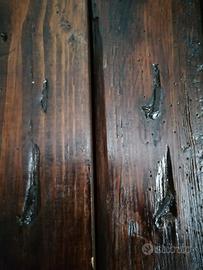 Porta a due battenti in legno con catenaccio e ferramenta originali Totalmente restaurata Altezza cm. 190 + 10 cm. telaio - larghezza cm. 89 + 10 cm. Telai
