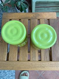 Ser composto da due barattoli porta sale in vetro. In condizioni pari al nuovo. Dimensioni 10x 10 Altezza 14 cm