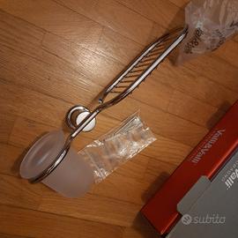 accessorio per bagno. portasapone e porta spazzolino. lungo 33 cm, largo 10 cm. si fissa sul muro. nuovo. produttore italiano valli&valli.