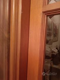 Porta in legno massello con riquadri in vetro molato. Da smontare. Larghezza di ciascuna anta 62 cm , larghezza totale incluso coprifilo 140