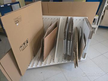 struttura in legno con cavi e morsetti creato appositamente da falegname x esposizione scatole