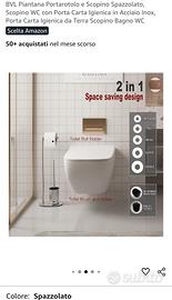 Accessorio bagno acciaio moderno. Nuovo. Porta scopino e porta rotolo in acciaio.