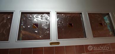 Vendo porta scorrevole da interno a due ante con binario esterno complete di cinque vetri di Murano caduna per ristrutturazione. Altezza 2,60m Larghezza 95,5cm