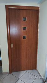 Porta scorrevole a scomparsa L90 x H 2.10,cornice profilo esterno bombato,con 3 riquadrature centrale con vetro di murano,completa di meccanismo scorrevole + guida scorrevole,buono stato € 50.00