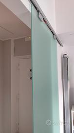Porta scorrevole vetro satinato lato sinistro montato 6 mesi fa. Ha anche il copri binario che non è stato montato. Come nuovo ma mancano le maniglie. Le porte sono 2 (l'altra sempre lato sinistro), per chi fosse interessato ad entrambe possiamo accordarci. RITIRO A MANO