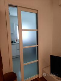 Porta scorrevole 80 x 210 laccata bianco opaco con vetro acidato completa di imbotto e coprifili.