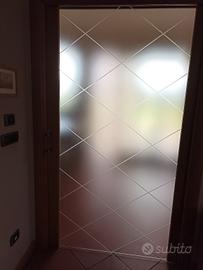 vendesi porta scorrevole in vetro goffrato Bertolotto, porta perfettamente funzionante. Luce cm 120 altezza cm 210. Completa di tutti gli accessori per l' installazione (cassa di scorrimento,coprifili, rifiniture, viti ecc..).