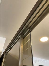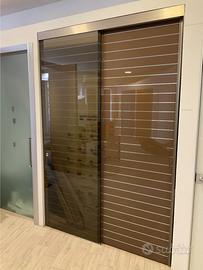 porta scorrevole doppia in vetro, binario ancorato a soffitto con mantovana in alluminio. Sistema classic Vitra Scorrevole esterno muro, binario di scorrimento doppio, con mantovana in alluminio.