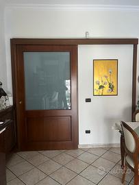 Porta scorrevole fatta fare da falegname di qualita legno ottimo con vetro centrale effetto opacizzato che non si intravede misure 1,22cm x 2,22cm come in foto ottimo stato da smontare e portarvela voi a vostro carico