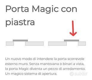 Vendo una porta scorrevole esterno muro, marca VillaRe linea HIDE MAGIC con piastra alluminio, finitura Miró colore bianco effetto legno, misura standard 80x210cm.