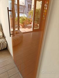 Causa cambio arredamento, vendo porta scorrevole GAROFOLI in vetro temperato spesso circa 1 cm, colore arancione/salmone. La porta è larga 87 cm e lunga 214 cm. Il binario superiore su cui scorre è lungo circa 185 cm. In perfette condizioni. Possibile vederla, senza impegno. Ci troviamo in pieno centro storico a Napoli, tra piazza San Gaetano e Sorbillo. Valore di acquisto 1500 euro.