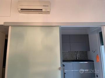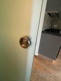 Vendesi elegante porta scorrevole in cristallo satinato completa di binario superiore.