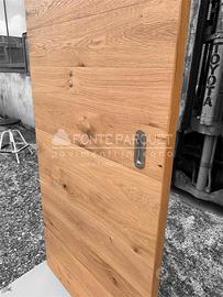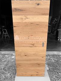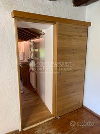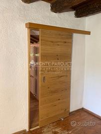 Porta scorrevole esterno muro realizzata in legno di Rovere Rustico, a fasce orizzontali