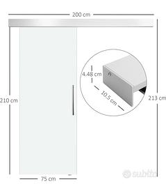 Vendo porta scorrevole in vetro temperato con binario in alluminio e maniglia in acciaio inox, modello robusto e funzionale, ideale per bagno, cucina, studio, camera da letto o altri ambienti interni. Design moderno e minimalista.