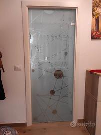 Vendesi porta in vetro scorrevole serigrafata pari al nuovo. Solo anta della porta, senza telaio. Prezzo trattabile. No spedizione