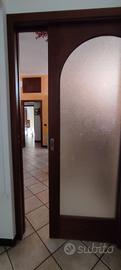 si vende una porta scorrevole realizzata su misura da falegname, in legno massello e vetro.