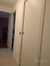 Vendo Porta Scorrevole di marca Scrigno in Legno con misure: Larghezza 80cm, Altezza 210cm, Spessore 4cm. La porta è completa di Profili verticali laterali e orizzontali superiori. Pulla porta sono fissate due Maniglie ed un Nottolino in acciaio satinato. Le maniglie, una all'interno ed una all'esterno della porta, sono Senza Serratura, facilmente sostituibili con quelle che prevedono la serratura. Poiché le maniglie sono Senza Serratura, anche il Profilo Battente è Liscio e non presenta il Buco per la Serratura, agevolmente praticale con una piccola fresa. Il Rivestimento del legno è di colore Bianco con Venature orizzontali sulla porta e verticali sui profili. La porta scorrevole è adatta per il controtelaio standard Eclisse sia per cartongesso che per intonaco. Le misure della Porta Scorrevole sono: Larghezza 80cm, Altezza 210cm, Spessore 4cm.