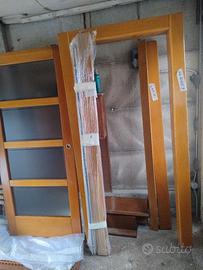 porta fatta in legno rovere massello con inserti in vetro satinato.