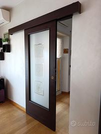 Vendo porta scorrevole in noce con binario esterno. Vetro satinato con ricamo fiore in foglia d'oro. Misure come in foto. Smontaggio e trasporto a carico dell'acquirente. Ritiro SOLO a mano zona Roma sud, astenersi perditempo e affaristi!