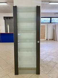 Porta scorrevole in legno Rovere Grigio con vetro a fasce satinate e trasparente cm 80 x 210 h. Versione scorrevole. Prezzo di listino € 1475,00 a seguito riallestimento sala espositiva prezzo offerta € 500,00