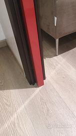 porta scorrevole scrigno laccata rossa dal design moderno con montante wengè. misure 80 x 210.