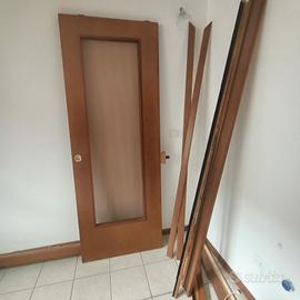 Vendo porta scorrevole ad incasso colore mogano, dimensioni indicative 211x78 cm. con vetro satinato, a seguito di ristrutturazione. La porta viene fornita con spolverini e tavole di tamponamento.