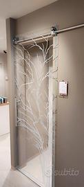 Porta scorrevole vetro Casali “Albero” – design iconico con binario inox Vendo porta scorrevole esterno muro della ditta Casali, modello con decoro inciso satinato “Albero”, uno dei disegni più riconoscibili della casa. Porta in vetro trasparente con lavorazione satinata che crea un effetto elegante e moderno, adatto sia ad ambienti contemporanei che più classici. Sistema scorrevole “Soft Zero” con binario a vista in acciaio inox e maniglione coordinato sempre in acciaio inox. Scorrimento fluido e silenzioso. Caratteristiche: * Modello: Casali “Albero” * Tipologia: scorrevole esterno muro * Vetro: trasparente con decoro satinato inciso * Binario: acciaio inox a vista * Maniglione: acciaio inox * Sistema: Soft Zero * Misura vano muro: L 700 x H 2100 Ideale per dare carattere all’ambiente con un elemento di design distintivo. Disponibile presso showroom.