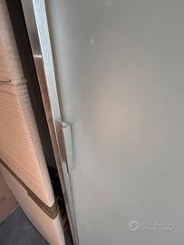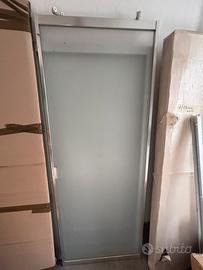 Porta scorrevole in vetro sabbiato con Mantovana esterna in alliminio , + parte fissa a completamento h cm 212 x l cm 80 spessore 3 cm