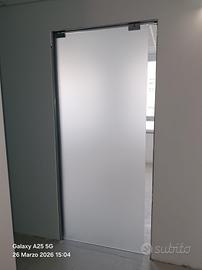 in vendita porta scorrevole in vetro temperato per scrigno da 90. misure vetro 90cm x 210cm un lato satinato e uno liscio. spessore del vetro 10mm Si vende senza accessori.