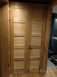 Porta da interno singola in legno di rovere 2 qualità spazzolato con qualche crepo e spaccatura (piccoli) con 5 pannelli interni (listellare di rovere) racchiusi sulla porta con apposito incastro, eseguibili solo su misura (già realizzate e consegnate) con misure lungh. 215 profondità 90 spess.4,5 cm. complete di mostrine dritte da 6 cm in pattina ambo i lati e parte superiore dritta completo di maestà larga 12 cm con relativi incastri con gomma di guarnizione, traverso longitudinale in modo che resti dritto nel tempo. Completo di 4 cerniere regolabili anuba regolazione 3d con cappuccetti e serratura con punto incontro e maniglia acciaio satinato. completo di finitura oliato trasparente, franco fabbrica compreso di imballo iva non comprendente nel prezzo. NOI siamo i diretti costruttori produttori di conseguenza siamo in grado di soddisfare la richiesta del cliente. la porta è già stata costruita su misura e su specifiche del cliente di conseguenza in magazzino non si tiene nulla ma possiamo farle su proprie specifiche e fattezze. per domande o dubbi contattateci P.S. eseguiamo MOBILI SU MISURA sempre con legno di abete antico o altro. per noi conta dare vita al vostro sogno DIRETTAMENTE DAL PRODUTTORE ASTENERSI COMMERCIANTI E RIVENDITORI