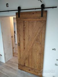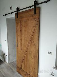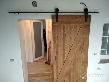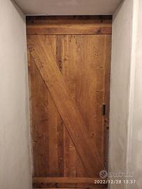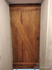 Porta scorrevole costruita a 3 strati per renderla leggere (interno multistrato esterno cartelle ambo i lati in legno vecchio) in modo che non si muova nel tempo, in legno di ABETE VECCHIO RECUPERATO DA TRAVI E PARANCOLE DA MURATORE E SOLAI con misura lunghezza circa 85 spessore 4,5 cm h 200, con tavole verticali esterne (perimetro da 4,5) mentre tavola interne spessore 3,5 cm con traversi in rilievo a 3 strati in modo che non si muova nel tempo alle estremità orizzontali (escluso teste di chiodo) escluso maestà, maniglia ad incasso per apertura e chiusura completo di finitura cerata leggermente scura come foto. La porta scorrerà su binario e carrucola in ferro ARRUGGINITO CORTEN FATTO SU MISURA non ammortizzato fissato direttamente a muro completo di fermo porta e sotto applicato squaletto per mantenerla in sede e ruote nascoste per il supporto onde evitare problemi di stabilità nel muro. Il tutto finito e carteggiato e levigato in modo che sia morbido al tatto e finitura cerata tinta noce medio. Una volta confermato verrà fatto disegno cad in 3d per dare proporzioni e fattezza del tutto. è già stata costruita e venduta su commissione di conseguenza non teniamo magazzino ma essendo NOI i diretti costruttori li facciamo noi con le nostre mani siamo in grado di soddisfare qualsiasi richiesta. il prezzo si intende franco fabbrica compreso finitura su porta e su ferro finitura arrugginita, non comprendente di iva. per domande o dubbi contattateci P.S. eseguiamo MOBILI SU MISURA sempre con legno di abete antico o altro. per noi conta dare vita al vostro sogno DIRETTAMENTE DAL PRODUTTORE. ASTENERSI RIVENDITORI E COMMERCIANTI