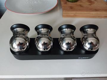 bellissimo porta spezie BergHOFF con 4 dosatori indipendenti e richiudibili (completamente regolabile: tutto aperto, tutto chiuso, regolabile a piacere o griglia fine ) , struttura legno, singoli porta spezie in acciaio inox 18/10 .