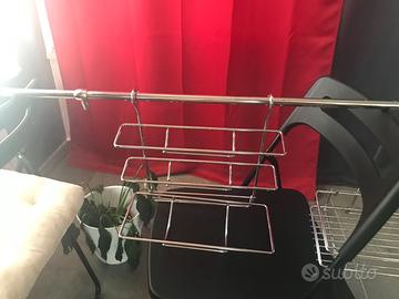 Porta spezie con 10 barattolini, porta scottex, porta rotoli cucina, 4 ganci per asciugamani, utensili da cucina. Da muro, in acciaio inox. Ritiro Pomezia o Fiano Romano.