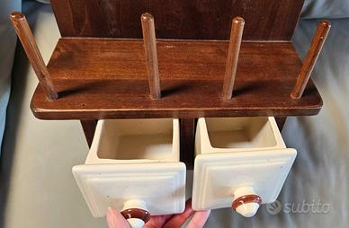 Porta spezie o porta utensili in legno stile rustico, da cucina, taverna. Altezza 72, larghezza 30, profondità 15 cm.
